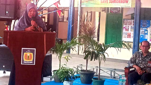 Kepala SMPN 1 Losarang, Roenah, S.Pd., menyampaikan rasa bangga sekaligus harapannya.