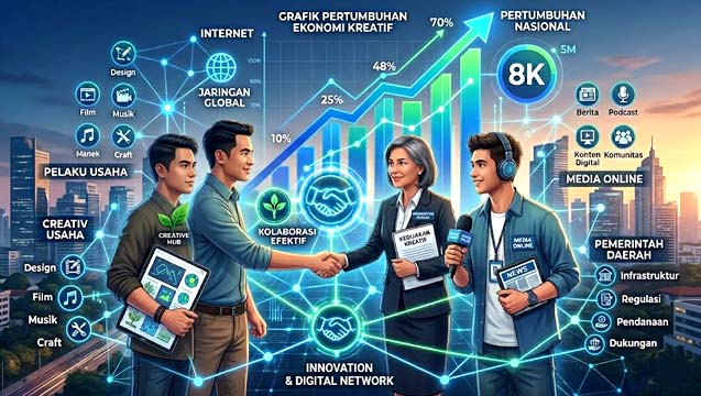 Pemerintah terus mendorong kolaborasi antara media, pelaku usaha, dan kreator. Media online memiliki peran strategis sebagai jembatan antara kreator dan pasar. Dengan distribusi yang luas dan cepat, media mampu memperkenalkan karya kreatif ke audiens yang lebih besar, sekaligus membuka akses pasar yang sebelumnya sulit dijangkau.