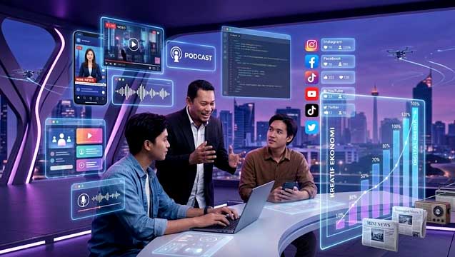 Dulu, media hanya berperan sebagai penyalur informasi. Kini, wajah media berubah drastis. Platform digital berkembang menjadi produsen konten kreatif yang beragam mulai dari video, podcast, hingga storytelling interaktif. Konten digital mampu menjangkau audiens luas sekaligus menciptakan peluang ekonomi melalui berbagai model monetisasi.
