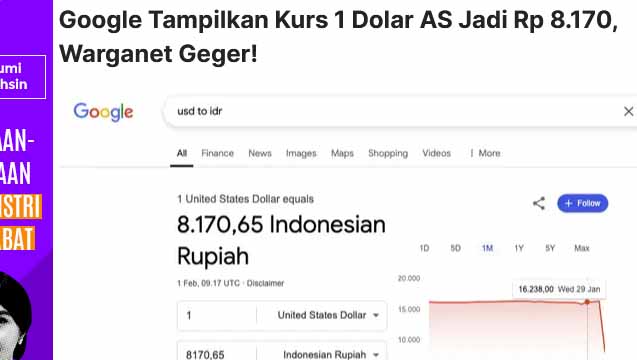 Jakarta, Sabtu (1/2/2025) menjadi hari yang menggemparkan publik setelah Google Search menampilkan kurs dollar AS ke rupiah sebesar Rp 8.170. Angka ini jauh lebih rendah dibandingkan kurs resmi Bank Indonesia, yang mencatat nilai tukar sebesar Rp 16.340 per 1 dollar AS. Kesalahan ini menimbulkan pertanyaan di kalangan masyarakat mengenai keandalan informasi yang ditampilkan di Google.