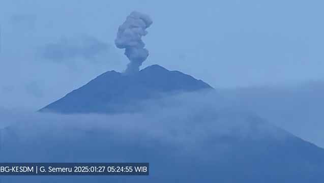 - Pada Senin (27/1/2025), Gunung Semeru di Kabupaten Lumajang mengalami enam kali erupsi, dengan tiga di antaranya teramati secara visual.
