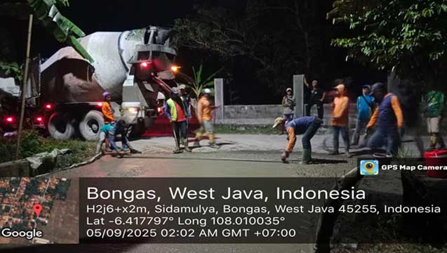 Bongas-Indramayu,08/09/2025 # Aspirasi masyarakat Desa Sidamulya, Kecamatan Bongas, Kabupaten Indramayu, kini terwujud dengan selesainya pengecoran jalan yang rampung pada dini hari Jumat (5/09/2025). Pekerjaan ini menjadi salah satu bentuk nyata pemanfaatan dana aspirasi yang tepat sasaran sesuai kebutuhan warga.