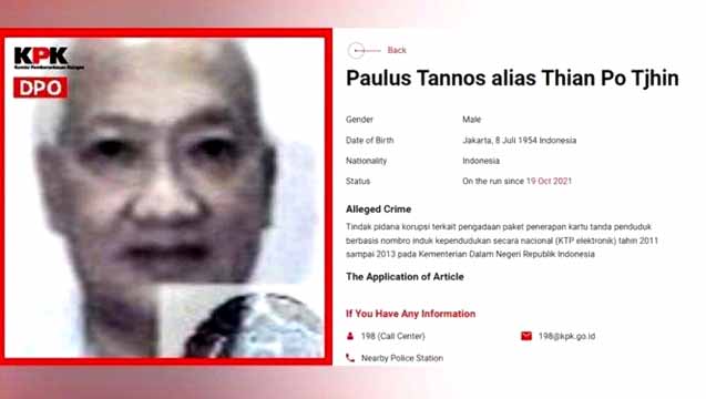 - Paulus Tannos, buronan korupsi E-KTP, ditangkap di Singapura.