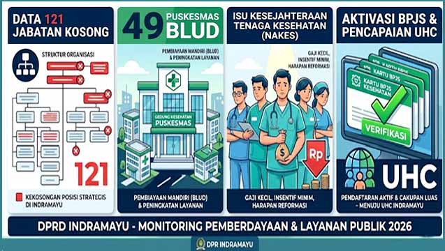 Sedangkan Dalam, S.H., KN., mengingatkan bahwa 49 puskesmas di Indramayu sudah berstatus BLUD dan harus mampu memenuhi standar pelayanan ibu, bayi, dan balita.