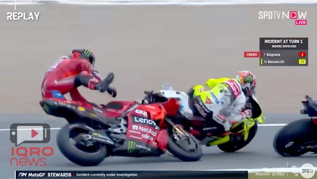 Francesco ‘Pecco’ Bagnaia tumbang dan out. Pecco jatuh di lap ke-3 dari 12. Tampak Pecco tak bisa lagi mengendalikan motornya saat berada di tengah ‘jepitan’ Marco Bezzecchi dan Brad Binder di tikungan. Di depan, terjadi persaingan sengit antara Jorge Martin dengan Marc Marquez.